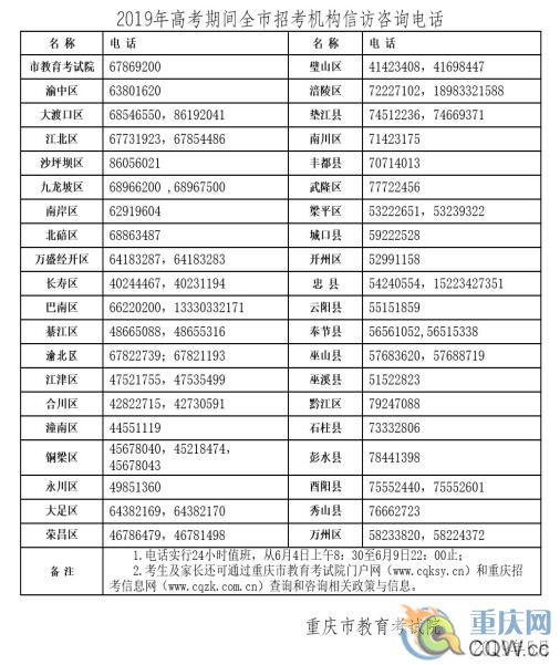 重慶市2019年全國(guó)普通高?荚囌猩陂g招考機(jī)構(gòu)信訪咨詢電話