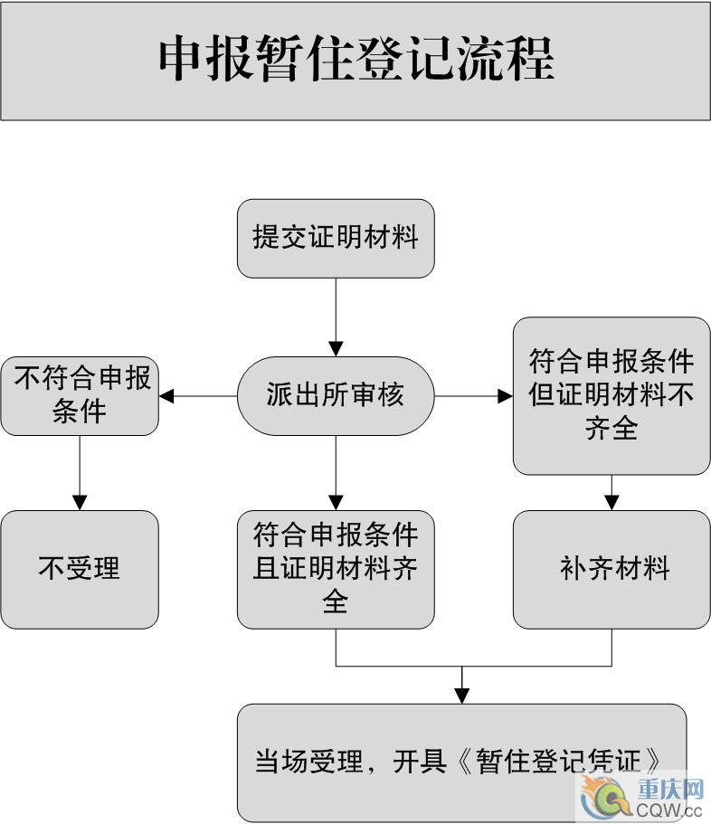 (一)暫住登記:公民申報暫住登記,需提交本人居民身份證或者其他有效身份證明、住所證明,由社區(qū)(駐村)民警審驗證明材料,對符合申報條件且證明材料齊全的,應當當場受理,向申報人免費開具《暫住登記憑證》。