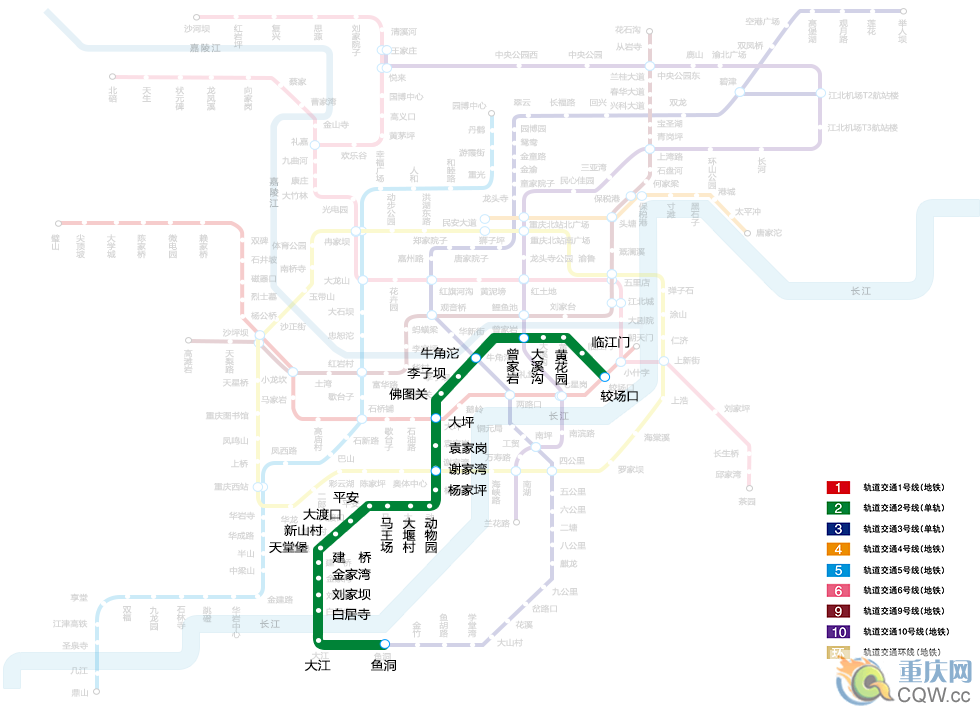 重慶2號線運營時刻表,2號線運營線網(wǎng)圖
