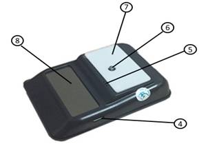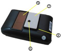 ①LED顯示屏 ②紅綠雙色LED燈 ③通渝卡卡槽 ④數(shù)據(jù)接口 ⑤蜂鳴器 ⑥狀態(tài)測(cè)試按鈕 ⑦3M雙面膠 ⑧太陽(yáng)能電池板