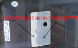 4、檢查粘貼效果:查看OBU背膠是否與玻璃完全貼合;若有少量氣泡,請(qǐng)用雙手捏住OBU的左右兩端,輕微的上下扭動(dòng)OBU的同時(shí)對(duì)OBU背膠部位進(jìn)行均勻施壓,擠出OBU背膠與玻璃之間多余空氣,盡量完全貼合(OBU與擋風(fēng)玻璃之間氣泡越少,粘得越牢固,狀態(tài)測(cè)試按鈕位置處少量氣體為正,F(xiàn)象)。