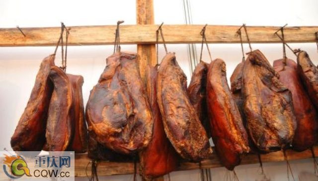冬至“入九”后,是鄉(xiāng)間農(nóng)家宰豬熏肉的季節(jié)。按部位將豬肉分割成二十多塊,用鹽腌制一至兩日,再煙熏一月左右,便制成煙熏臘肉。熏制過的臘肉,帶有獨(dú)特的香味,煮熟后直接食用或者是切薄片用來搭配蒜苗、青椒等炒制都是風(fēng)味獨(dú)特。