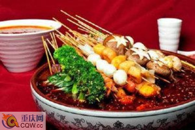 秀山麻辣燙的湯料是由豬腿骨和排骨精心熬制而成,味鮮且營養(yǎng)豐富;麻辣串在小沸的湯中煮好后,隨即放入餐桌上準(zhǔn)備好的圓盤之中; 圓盤有兩個(gè),一個(gè)盛裝的是由姜、蒜和骨頭湯調(diào)制的清湯,另一個(gè)則是辣椒湯,可以滿足不同顧客的口味需求。若在酷暑時(shí)節(jié)品嘗這又麻又辣的小吃定會(huì)大汗淋漓,配上一杯清涼可口的酸梅湯,是消暑解渴的不二選擇。