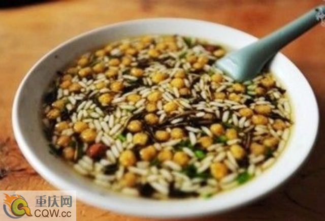 這是土家族的特色飲食,其來源有兩種說法:一是漢代曾在酉陽駐軍的伏波將軍馬援,因當?shù)囟嗾瓮{士兵身體健康,遂用合茗葉、茱萸、芝麻、鹽巴研末為湯飲用(取名五味湯),其后百姓仿效烹制,這才逐漸演變成獨具風味的油茶湯;另一種說法源于土家族先民巴人。