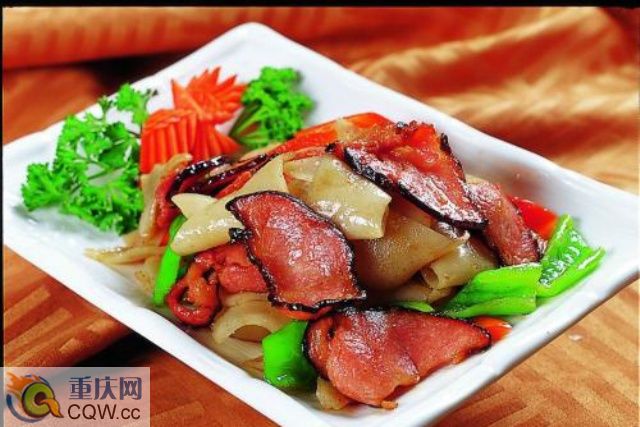 臘肉粉粑粑:先將洋芋去皮洗凈,把洋芋放在長方形蜂窩眼的背面用力上下滑動(dòng)摩擦,在摩擦過程中偶爾加點(diǎn)水,這樣擦出來的洋芋粉易溶解于水中,慢慢沉淀于器皿底部。把菜油放入鍋中燒至六成熱左右,在淀粉里加入適量的雞蛋和水混合,慢慢倒入鍋中不停地?cái)嚢,逐漸攤開成皮,皮的厚度一般應(yīng)掌握在硬幣左右的厚度即可,將皮的兩面反復(fù)的進(jìn)行煎炕,成型后出鍋切成方條形待用。將切好待用的臘肉片倒入鍋中翻炒,直至油水瀝出,肉片卷曲,準(zhǔn)備少許蔥,生姜,食鹽和粉皮一起倒入翻炒,再放入青椒,炒至粉皮白中微黃,出鍋時(shí)放入蒜泥效果最佳。