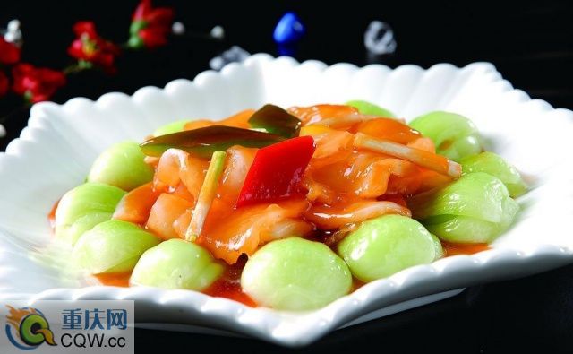 “紅燒魚唇”是四川重慶的一款名菜。此菜系用于鱷魚唇,幾經(jīng)氽煮,發(fā)好之后,再配以冬菇、火腿、豬肘、菜心紅湯等,用文火慢成菜。汁色紅亮,香味醇濃,柔軟肥糯,咸鮮可口,是冬春時(shí)令佳肴,為川菜宴席傳統(tǒng)名品。