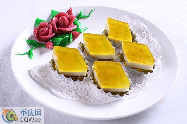 桂花糕:永川傳統(tǒng)美食,迄今已有百余年歷史。本品質(zhì)味香甜細(xì)嫩,別具桂花色味,謂之萬白叢中一點(diǎn)黃。1984年評(píng)為重慶市名特小吃。