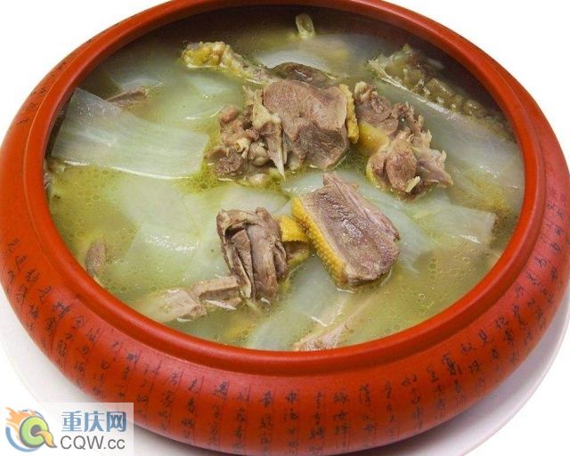 酸蘿卜老鴨湯是川菜中的經(jīng)典燉品。營養(yǎng)價(jià)值極高, 蘿卜含有能誘導(dǎo)人體自身產(chǎn)生干擾素的多種微量元素,可增強(qiáng)機(jī)體免疫力,并能抑制癌細(xì)胞的生長,對防癌,抗癌有重要意義。且蘿卜中的芥子油和膳食纖維可促進(jìn)胃腸蠕動,有助于體內(nèi)廢物的排出。常吃蘿卜可降低血脂、軟化血管、穩(wěn)定血壓,預(yù)防冠心病、動脈硬化、膽石癥等疾病。鴨肉中含有較為豐富的煙酸,它是構(gòu)成人體內(nèi)兩種重要輔酶的成分之一,對心肌梗死等心臟疾病患者有保護(hù)作用。且對老年性動脈硬化和高血壓、心臟病有較好的療效。
