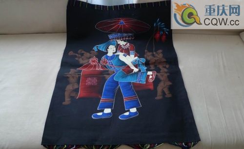 土家刺繡在配色上有其獨特之處,一般喜歡選用青、蘭、大紅等深色布做底布,圖案紋樣的繡線則多選用淺色,或者相反,底布花同淺色,而繡線用比較強烈的深色,兩種用法的效果可以使繡制作品顯得質(zhì)樸逼真,色澤鮮艷生動,對比強烈,給人以喜悅吉慶的美感。