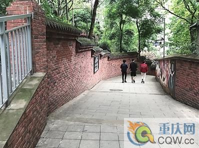 山城第八步道不足千米,但是步道打通了去大禮堂、棗子嵐埡、兒童醫(yī)院的便捷通道。走完山城第八步道,經(jīng)過一段市政道路便進(jìn)入文化宮巷。文化宮巷的整體風(fēng)貌和山城第八步道一致,該步道起于中山二路兒童醫(yī)院門診部,止于學(xué)田灣。和山城第八步道部分穿過居民區(qū)相比,文化宮巷更袖珍,更緊致,步道兩側(cè)都是紅色高墻,粗壯的黃葛樹從兩側(cè)墻根生長出來,初夏時節(jié),嫩綠的樹葉讓人心曠神怡。