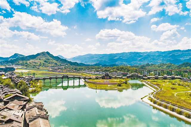 “這里不僅有江南水鄉(xiāng)的美,還融合了巴文化、土家文化等多種文化,確實(shí)值得一游。”徐先生身后,滄浪橋靜靜地橫臥在阿蓬江上,重檐歇頂,形如波浪起伏;橋下,阿蓬江靜水深流,一艘白色游艇正飛駛而過,在蒼青色的水面劃出潔白如銀的光練,水波蕩漾,倒影輕輕飄搖……