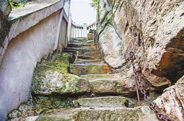 走過搖搖晃晃的索橋,沿迂回曲折的轉(zhuǎn)梯,可從寨門攀至寨頂。流連于依山而筑的飛閣層樓,一覽歷代流傳下來的石刻、畫像和題詩。透過各層窗扉,遠眺江岸壯觀景色,可謂一步一景,驚喜連連。