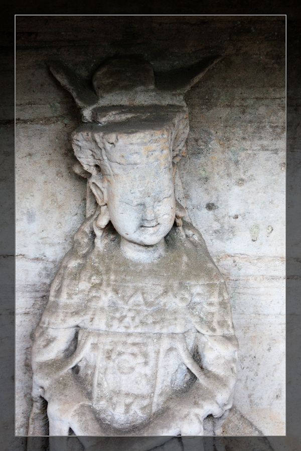 北山?jīng)]有碰到別的游客倒也愜意。這里的雕塑近乎佛龕,外面還覆蓋了人工長(zhǎng)廊,大若居室,小的不過(guò)十幾厘米見(jiàn)方。雖然不乏精細(xì)之作,但大多粗陋且破損嚴(yán)重。由于沒(méi)有導(dǎo)游,更是來(lái)也匆匆去也匆匆;厝サ臅r(shí)候沒(méi)找到出租車(chē),擠在一輛摩托車(chē)上下了山,略有驚險(xiǎn)。