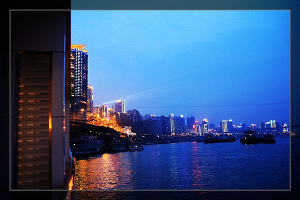 回賓館取回行李,稍息片刻直奔朝天門(mén)碼頭,可惜當(dāng)時(shí)總擔(dān)心訂的船票出問(wèn)題,沒(méi)太注意兩江分界便提早上了游輪。原打算再上岸吃最后一頓,想想又要換上岸牌,又要等上下纜車(chē),就想在游輪上解決晚餐。雖然想到豪華有豪華的價(jià),但看到魚(yú)香肉絲套餐98元一套,還是恨恨地離開(kāi)。幸好還買(mǎi)了一些麻花等小吃,不然五星游輪的第一晚就要餓肚子了,真是對(duì)瓷器口吃不動(dòng)地報(bào)應(yīng)啊。在夜色里五星游輪小巧精致的露臺(tái)上,看到了朝天門(mén)的激光表演,在些許的搖晃中,晚上十點(diǎn)半,五星三峽之旅徐徐啟程,回北京再好好讀讀《失蹤的上清寺》吧……
