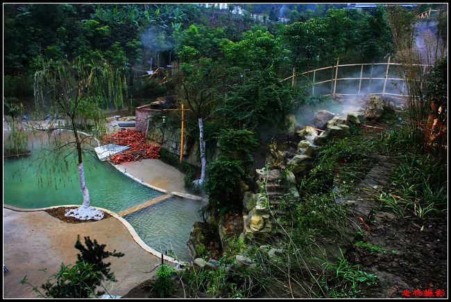 一位朋友相邀,我們一群朋友開車去了東泉。多年來,東泉在我的印象中是一個(gè)裸浴習(xí)俗十分古樸的地方。東溫泉風(fēng)景區(qū)地處重慶市巴南區(qū)東泉鎮(zhèn)境內(nèi),與西南北泉相呼應(yīng),列重慶四泉之首,尤以豐富的地?zé)豳Y源獨(dú)領(lǐng)風(fēng)騷。景區(qū)內(nèi)有大小泉眼48處,主泉日流量1229多噸。熱洞尤為奇特,洞中水常年保持40℃以上的水溫,富含氡、氟、鍶、鋅、鋰等 40 多種礦物質(zhì),屬硫酸鈣鎂型綜合醫(yī)療溫泉水,對人體具有顯著的養(yǎng)生、醫(yī)療、美容、保健等功效,被贊為亞洲奇觀——天然桑拿浴。關(guān)津峽口下游處的一處溫泉,被當(dāng)?shù)厝朔顬椤吧袼。不論春夏秋冬、白晝黑夜,男女皆在此入浴,毫無拘泥羞澀之態(tài),可稱民俗一絕。村民稱,上世紀(jì)八九十年代,泡一段時(shí)間溫泉后,人倍感輕松,消乏解困,對疥瘡等多種皮膚病和關(guān)節(jié)炎、肩周炎、腰肌勞損、感冒、風(fēng)濕等均有顯著療效。因而,前去裸浴的人最多,每逢趕集或送公糧,很多外地人都在此裸浴后才回家。特別是在清明節(jié)前,遠(yuǎn)在南川、涪陵一帶的人都紛紛前來裸浴。當(dāng)?shù)芈阍∈鞘来鄠飨聛淼拿耖g傳統(tǒng)習(xí)俗,不知源于何朝何代。裸浴有不成文規(guī)定,那就是“男左女右”、“看得摸不得”。因此,我們一到鎮(zhèn)上,朋友就告誡,最好是只看,不要拍照,以免招來麻煩,這個(gè)涉及人家的私秘。于是,我們只好照了一些水凼凼,沒有敢照裸浴的人。其實(shí),從上世紀(jì)九十年代開始,很多單位陸續(xù)進(jìn)駐當(dāng)?shù)兀_發(fā)溫泉資源。特別是最近幾年來,溫泉城、賓館、農(nóng)家樂、酒店等如雨后春筍冒出,隨之吸引來大量游客,同時(shí)很多泉眼被圈占,當(dāng)?shù)卦淘兜牧?xí)俗被改變。鎮(zhèn)政府投資修建浴場,專供當(dāng)?shù)卮迕衩赓M(fèi)沐浴,旨在恢復(fù)當(dāng)?shù)貍鹘y(tǒng)的淳樸民間習(xí)俗。但是,當(dāng)?shù)卮迕耠m有人前去裸浴,但基本上以老人和小孩為主,年輕男女少之又少。姑娘小伙都說,“誰愿意脫得個(gè)光希希的,讓人看喲!”
