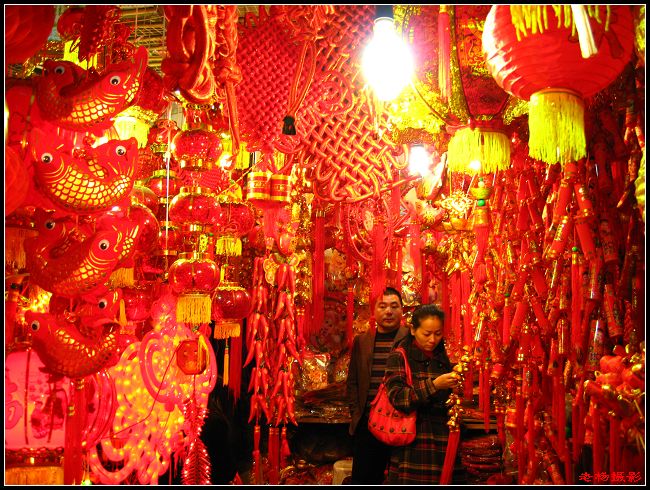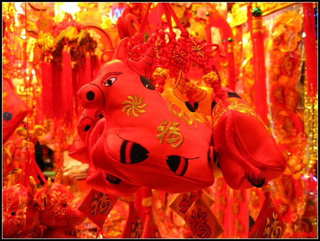 新年元旦一過,舊歷年春節(jié)便一天一天走來,也越來越近了。春節(jié),是農(nóng)歷的歲首,是我國古老的傳統(tǒng)節(jié)日。古代過“年”不是在臘月二十九日或三十日,而是在“蠟日”,即后來的“臘八”。南北朝以后,把“蠟祭”移至歲末。到了民國時,改用陽歷,才把陰歷年叫“春節(jié)”,因為春節(jié)一般都在“立春”前后。春節(jié)是我國最盛大、最熱鬧的一個古老傳統(tǒng)節(jié)日,俗稱“過年”。按照我國農(nóng)歷,正月初一古稱元日、元辰、元正、元朔、元旦等,俗稱年初一,還有上日、正朝、三朔、三朝、三始、三元等別稱,意即正月初一是年、月、日三者的開始。春天來臨,萬象更新,人們有足夠的理由載歌載舞來迎接這個節(jié)日。于是,節(jié)前就在門臉上貼上紅紙黃字的新年寄語,掛大紅燈籠和貼“!弊旨柏斏裣竦,“!弊诌必須倒貼,路人一念“福倒了”,也就是“福到了”。春節(jié)的習俗很多,但掃塵,貼春聯(lián)、門神、年畫、倒貼“!弊,年夜飯(團年飯) ,封紅包(壓歲錢) ,拜年等習俗還沒有少。家家戶戶都得辦,窮家富家也在辦,人多人少仍然辦。于是,臘月初八,吃了臘八粥。那“年”就臨近了,家家戶戶就開始置辦年貨了。重慶朝天門小商品批發(fā)市場的年畫店就熱鬧起來了,春聯(lián)、年畫、門神和“福”字也紅火起來了,明年是牛年,那牛兒也美起來了。