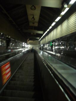 進(jìn)房安排好,3點(diǎn)鐘出來(lái),首先一件事便是買回程票(頭天晚上已經(jīng)與北京商量好,如果買不到T10,就訂飛機(jī)票)。前臺(tái)告訴我:出門左手5步下地下通道,去火車站、乘皇冠電梯均可。火車票如此好買,心定一大半,旁邊就是汽車站,去打聽明天去大足的票,人少,服務(wù)員耐心,對(duì)重慶的好感大增!短信發(fā)回北京后,信馬由韁地逛去。地下通道的另一站直接是皇冠電梯的入口,買了票才知道這個(gè)攜程告訴的電梯原來(lái)本名叫做“兩路口電梯”。初上電梯并不覺(jué)得危險(xiǎn),不久見(jiàn)對(duì)面向下的男女老少都扶著扶手,轉(zhuǎn)身一望,不由自主地晃了一下:好高。≡共坏脭y程把它當(dāng)成地標(biāo)呢。