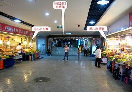 扶梯出入口旁的黑心水果攤