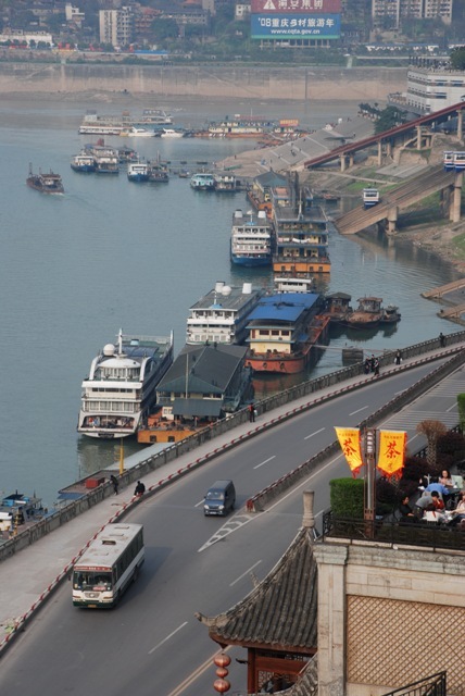 (洪崖洞觀嘉陵江,前方的纜車就是朝天門碼頭纜車)