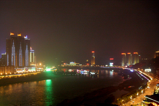 吸取前幾次教訓,晚餐我們決定去看起來本地人最多的地方。這次我們?nèi)チ税臀短。就在南岸索道出口下來。這次總算扭轉(zhuǎn)我們對重慶美食觀感,油渣蓮白、巴味魚、野山椒兔肉幾個經(jīng)典菜式吃得滿足,坐在外面大露臺露天吃飯更是美妙非常,對岸燈火通明,江水微瀾在江風吹拂下忽明忽暗,即使民生銀行巨大霓虹燈廣告也不能引起我對它股價暴跌的不滿。晚飯后打車回到解放碑,在商業(yè)中心逛來逛去,12點還有路邊排擋,當?shù)厝顺缘脽狒[。不過,解放碑的好又來酸辣粉非常不好吃。