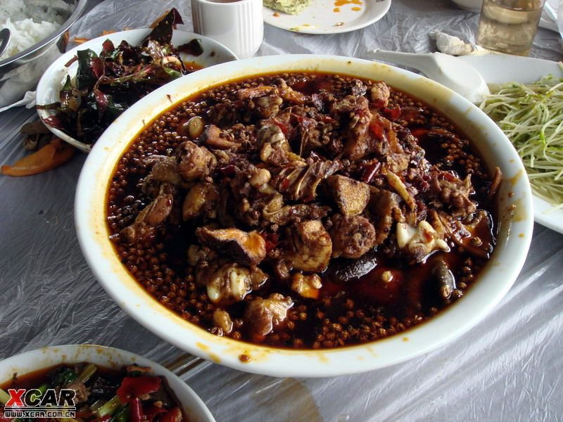 根據(jù)線路安排做長江索道前往南岸 來回4元很方便(住的地方離嘉陵江和長江索道都非常近 )一路看高空景色過去 怎么長江的水是黃的 記得去年底在宜昌看到的長江還是綠色來 奇怪 到了南岸打了私人“突突”車上山 以為很近 誰知道一路盤山公路上去開了也老半天 到了泉水雞一條街 看看這里好像外地人不太來吃哦 中午時(shí)分全市當(dāng)?shù)剀囎娱_過來 全當(dāng)農(nóng)家樂 吃完一番桌子就麻將上了。我們兩個(gè)人也挑了個(gè)4斤的雞 居然除了雞毛 雞腚全用到菜里了 又點(diǎn)了2個(gè)素菜 折耳根 豌豆苗 一共140元 反正看圖那么大一碗泉水雞 我們吃完還跟沒動一樣 實(shí)在太多了。