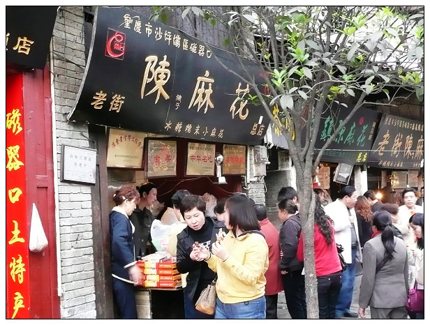 一進(jìn)磁器口鎮(zhèn)的老街,還真被一排溜的“陳麻子”麻花店所鎮(zhèn)住。