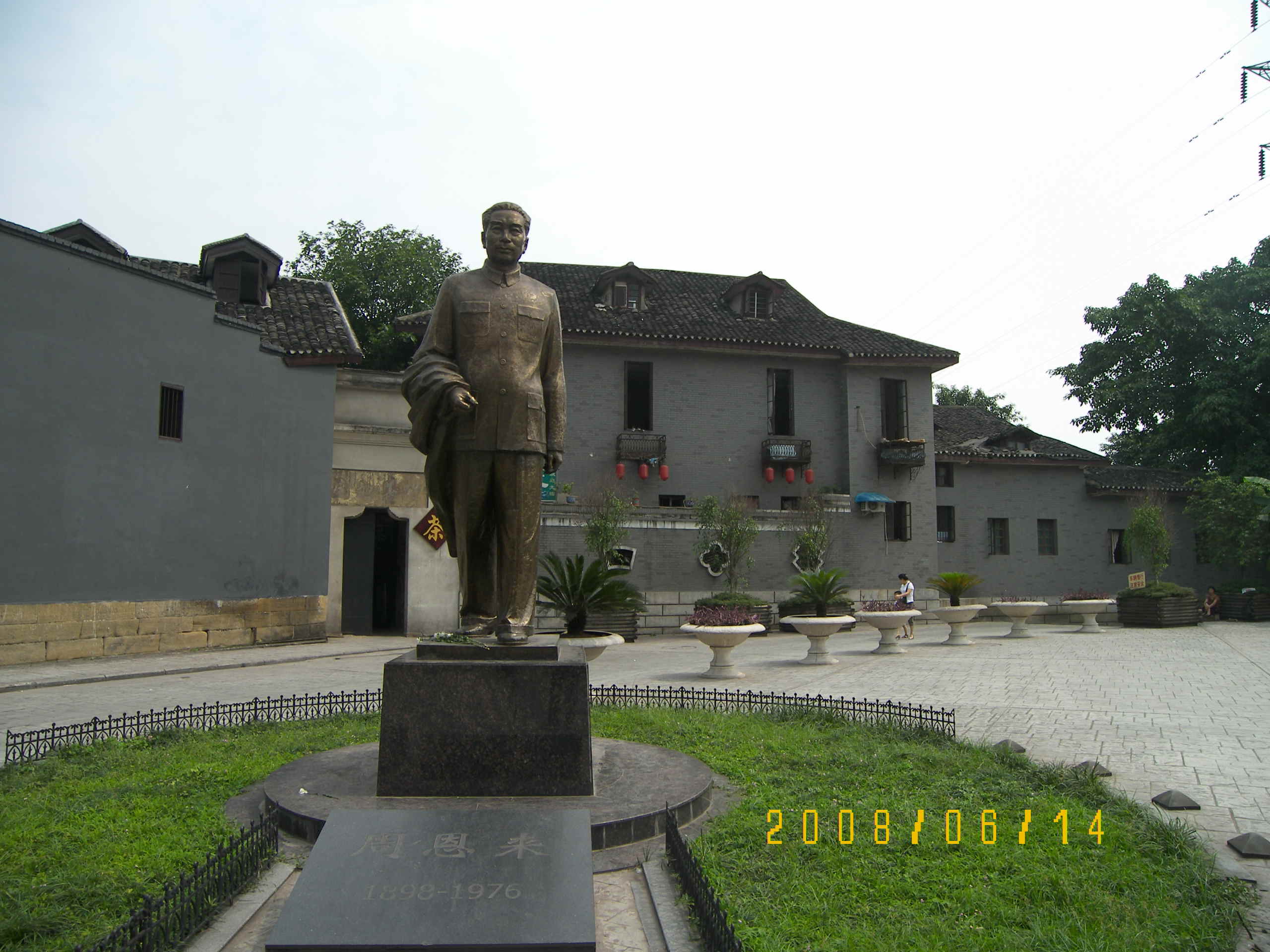 看到10:20出來(lái),向曾家?guī)r50號(hào)周公館進(jìn)發(fā),途經(jīng)戴笠公館舊址,己經(jīng)很破敗了.拍完周總理銅像,10:30開(kāi)始參觀周公館,這里是抗日戰(zhàn)爭(zhēng)時(shí)期中共南方局和八路軍重慶辦事處在城內(nèi)的一個(gè)主要辦公地點(diǎn),為兩樓一底磚木結(jié)構(gòu)房屋,以周恩來(lái)的名義租用,對(duì)外稱“周公館”。二樓有董必武和葉劍英同志的辦公室。其右側(cè)是軍統(tǒng)特務(wù)頭子戴笠的住所,左側(cè)是國(guó)民黨警察局派出所。樓房?jī)?nèi),中共代表團(tuán)僅租賃了一、三兩層,二樓的大部分和底層門廳旁的廚房,均為國(guó)民黨人居住,真有左右內(nèi)外夾擊之勢(shì)。1958年11月董必武同志故地重游,曾幽默地作詩(shī)記其事:“八年抗日此棲身,‘三打維支’笑語(yǔ)新。戴笠為鄰居在右,總看南北過(guò)門人!痹诙䴓呛腿龢,分別有董必武、葉劍英同志的辦公室。1945年8月,毛澤東同志來(lái)重慶與蔣介石談判期間,曾在底層會(huì)議室接見(jiàn)中外各界人士,周恩來(lái)同志更是經(jīng)常在此會(huì)見(jiàn)各界人士和中外記者。