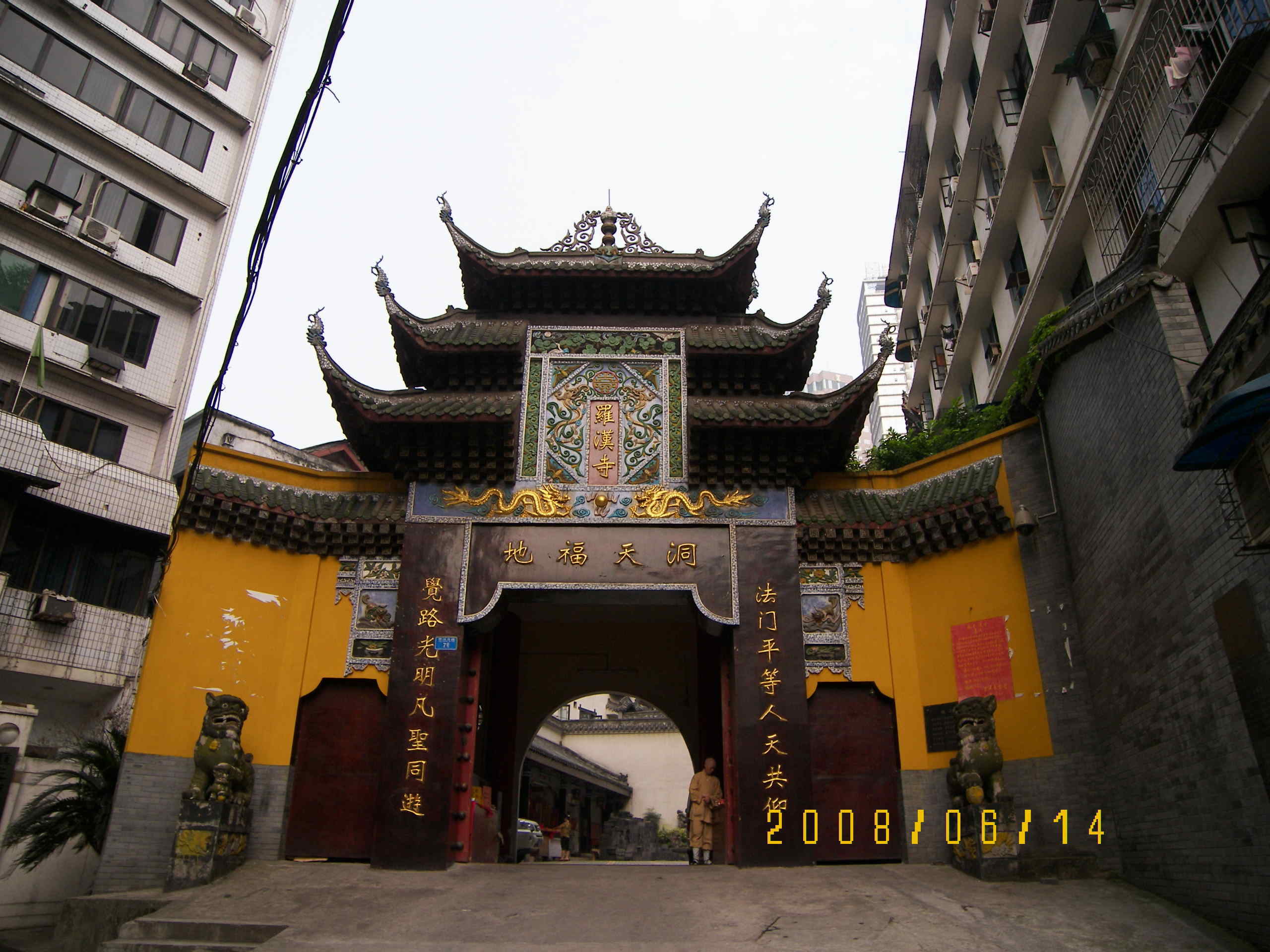 退房后約7:45出門,沿朝天門隧道旁的東正街上行,經(jīng)第一步道、民族路來(lái)到羅漢寺,路口就看到了"警安消防器材公司"的牌子,門票10元.羅漢寺因<<瘋狂的石頭>>而名聲大噪,差不多到重慶都要區(qū)看看,其實(shí)它本身的歷史也不短. 它始建于北宋治平年間(1064-1067年),原名治平寺。清乾隆十七年(1752年),因前殿坍圯,改建龍神祠。后又稱羅漢寺、古佛巖。清光緒十一年(1885年),隆法和尚重修廟宇,并仿新都寶光寺建羅漢堂,泥塑五百阿羅漢,方改名羅漢寺。進(jìn)去的時(shí)候憑票領(lǐng)取香3支,蠟燭1對(duì).地方不是很大,五百阿羅漢堂在整修,據(jù)工人師傅說(shuō)要明年才能完工.古佛崖石刻蠻漂亮,可惜不能拍照.其實(shí)石頭有很多場(chǎng)景是在別處拍的,燒過(guò)香,拜過(guò)諸位佛爺菩薩保佑自己和親朋好友平安后,看過(guò)大雄寶殿和藏經(jīng)閣,從羅漢寺后門的五一巷出去,又走到了解放碑,找到吳抄手也就找到了能仁寺.能仁寺(免費(fèi)參觀)原名三教堂,早期名海云寺,也有三百年的歷史了.山門牌樓上的住持題字并未發(fā)現(xiàn),據(jù)說(shuō)原來(lái)還有一個(gè)老的牌樓,估計(jì)在那里.地方不大,大雄寶殿和鐘樓、鼓樓看完,從側(cè)面走出去得意世界.