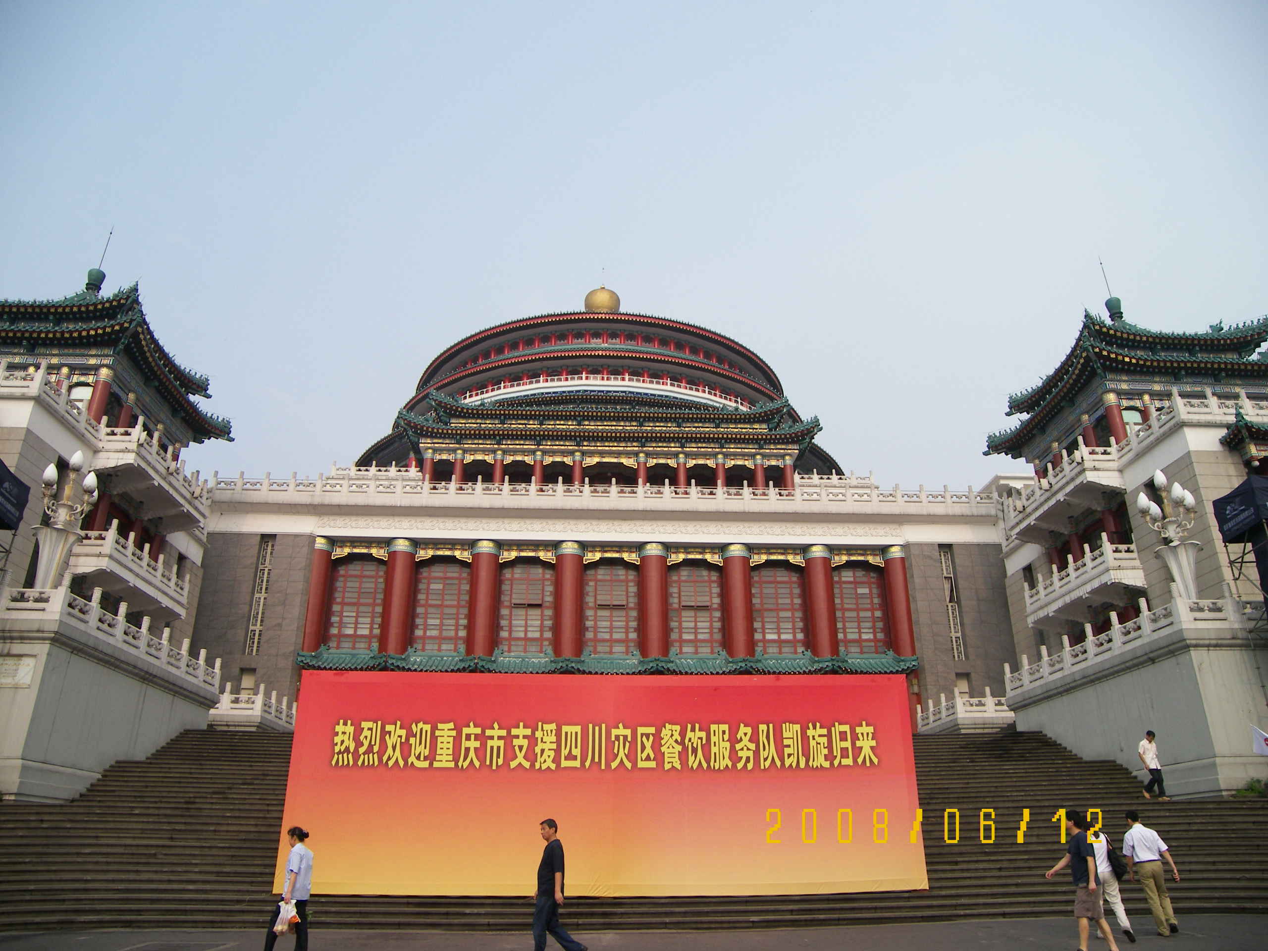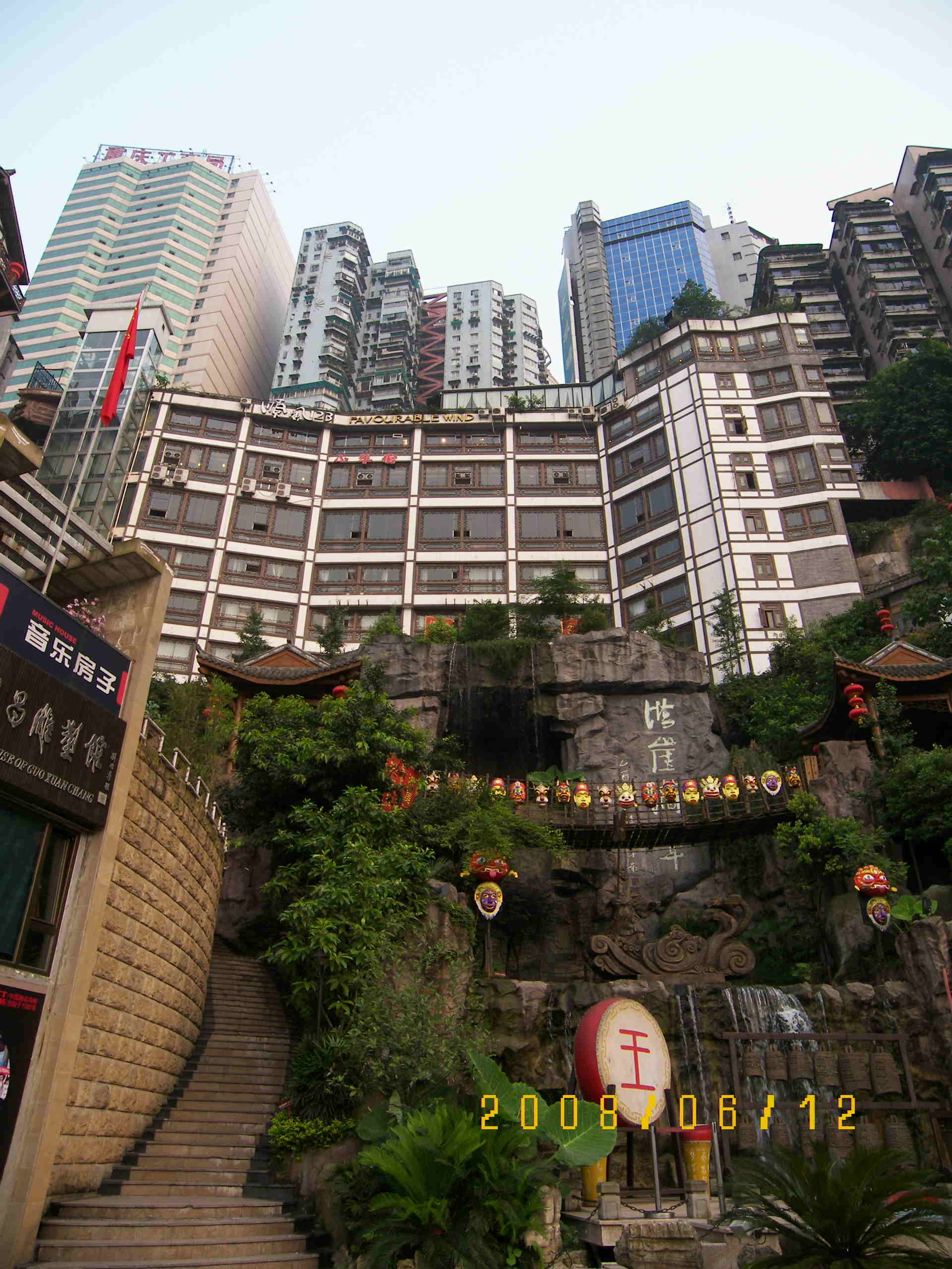 16:55出紅巖村乘215路去大禮堂(1元),大禮堂可以說是是重慶市的標志性建筑了,始建于1951年,1954年竣工.建筑氣勢雄偉,金碧輝煌,是中國傳統(tǒng)宮殿建筑風格與西方建筑的大跨度結(jié)構(gòu)巧妙結(jié)合的杰作.五層的建筑, 1997年重慶直轄以來,還專門撥款對大禮堂實施了四次較大的內(nèi)部維修改造工程.2006年又經(jīng)歷了一次搶救性的修復,才有目前的壯觀雄偉.緊趕慢趕就怕來不及,好在此是18:30關門,趕得及看,穹頂是一大亮點.出大禮堂就是人民廣場了,也是97年重慶直轄改造那次,拆除大禮堂圍墻修建的.因為說是15號奧運火炬要過來,廣場上旗幟飄舞,還有很多老阿姨在跳扇子舞.因為三峽博物館也關門了,所以考慮從人和走山城步道,但問下來又是上坡的路,還是免了吧,寧走平路三千里,不爬山上一個坡.還是去洪崖洞吧.