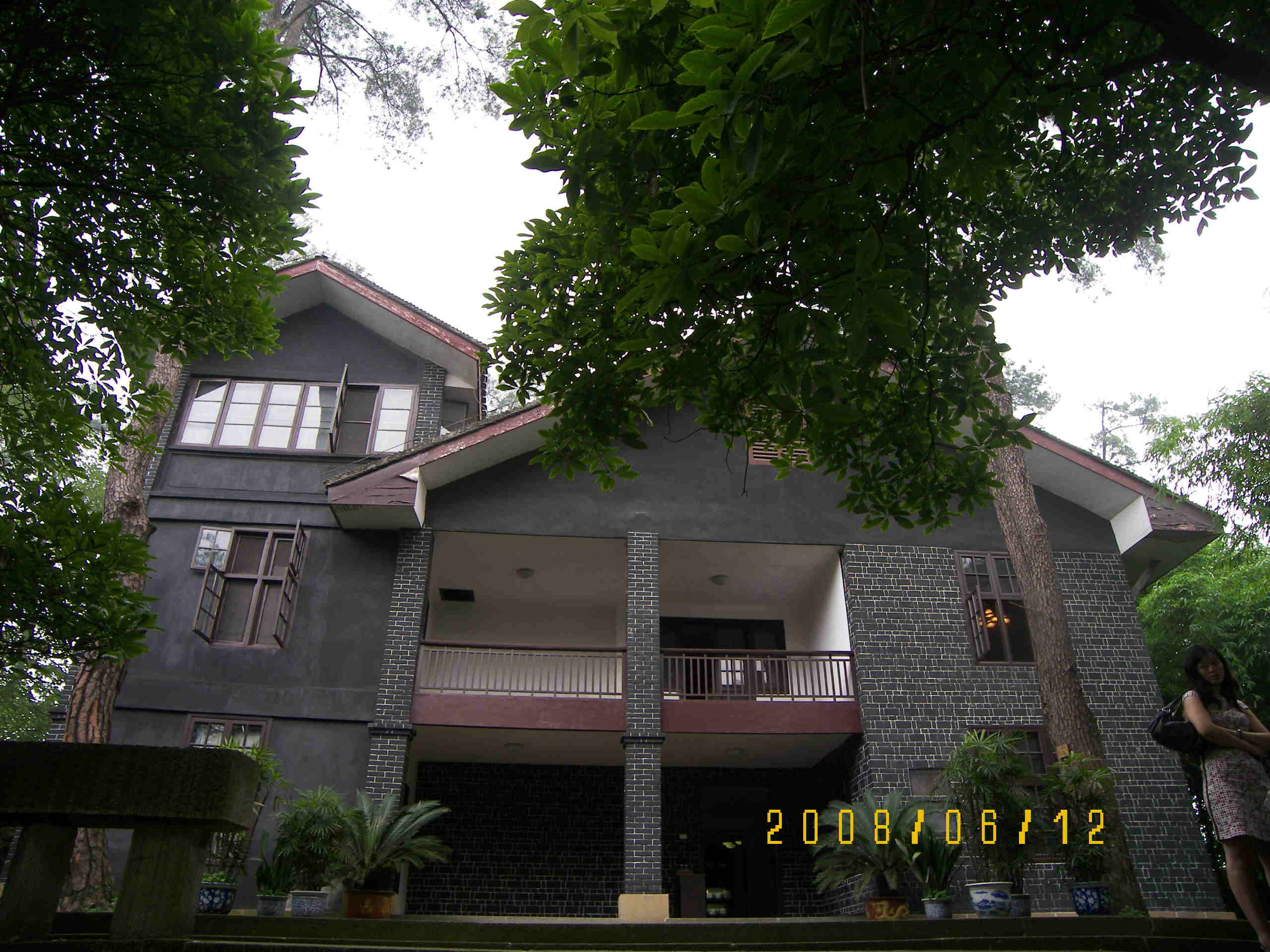下到長濱路,沿護欄走到朝天門廣場,經(jīng)過重慶市規(guī)劃展覽館,門票要20,可能是免費午餐吃多了,反而不習慣收費的了,嘿嘿!在朝天門廣場走了走,下到輪渡朝天門躉,這里有發(fā)往江北、彈子石、野貓溪三地.據(jù)工作人員說去江北一天六班,彈子石和野貓溪半小時一班.10:00開船,4分鐘到對岸.上去的路面有刻著”巴渝十二景”的地磚.轉(zhuǎn)了一圈,此處遍尋不到公交,抓緊時間打了部三輪摩托從涂山街去黃山蔣介石官邸,10:28開始爬小路,真是討厭爬山,唉!約半個小時到頂,先看了周至柔官邸,可是關著.到旁邊的黃山小學,被告之憑票參觀.我是從小路上來的,自然沒有,而且這里也沒賣,要到云岫樓才有賣,OK,那就去瞧瞧吧,好看就買.經(jīng)過草亭,可能是吃飯時間,沒人值守,這里曾經(jīng)有張治中、蔣經(jīng)國和馬歇爾居住過,進去看了看,地方很小,主要是一些抗戰(zhàn)時期的一些圖片,幾分鐘就出來了.接著去云岫樓,這個是老蔣的住處,自然不同凡響.看資料說,黃山原為白禮洋行買辦黃云階的私產(chǎn)(巨有錢啊,買山玩),旁人以他的姓氏為名,將這座山稱為“黃山”.重慶的黃山與安徽的黃山名稱相同,但各不相干.黃山前臨涼風埡,左傍老鷹巖,林幽谷靜,空氣清新,夏季氣溫比重慶市中區(qū)低五六度.抗戰(zhàn)初期,蔣介石侍從室花重金購買此山,據(jù)說也是為了躲避日機轟炸.總覺得老蔣很會享受,不少名山都有老蔣的足跡.小樓很漂亮,居然又沒人,估計在午飯吧.堂而皇之進入?yún)⒂^,出來時問工作人員得知,房子是原來的,但陳設都是復制品了.轉(zhuǎn)到現(xiàn)在已經(jīng)12點多了,想起剛才去草廬的岔路上有賣粽子的,跑過去準備買,結(jié)果聽說我只要一個試試味道,干脆送了一個白米粽給我,好人啊!下山在廣場這里轉(zhuǎn)了轉(zhuǎn),抗戰(zhàn)歷史陳列館,孔樓和松廳等等都要憑門票,還是算了吧.