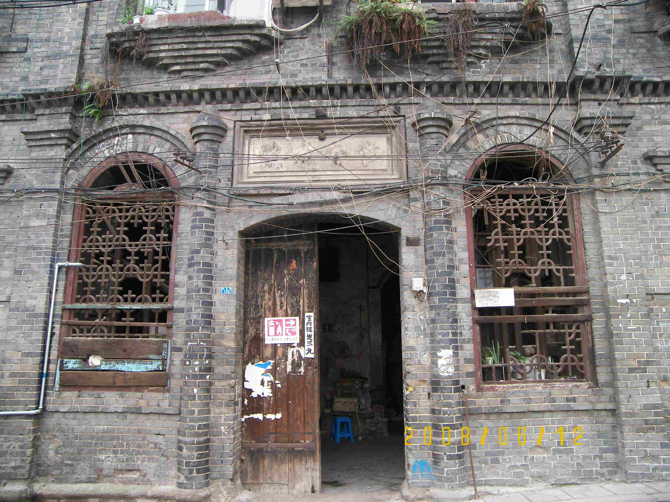 昨天被雨淋濕的鞋子還沒干透,只能硬著頭皮穿上.7:20出發(fā),先拐上芭蕉園,這里也是老城區(qū)了,里面基本上是些低矮的老平房,有些已經(jīng)掛上紅色的"危房牌"正值上學時間,很多學生在吃早飯或嬉戲.走到解放東路轉(zhuǎn)進白象街,這里有一些老建筑,不過似乎里面的住戶不是太清楚原來的用途,像白象街142號、151號、154號和166號等.尤其是142號(汪全太號,美商大來公司舊址,摘自”重慶市優(yōu)秀近現(xiàn)代建筑”目錄)的住戶說此處原來是跳舞廳,供附近太平門和望龍門的碼頭工人(?感覺會不會是船員)來耍的地方,現(xiàn)在一層的天花板和燈還是原來的.