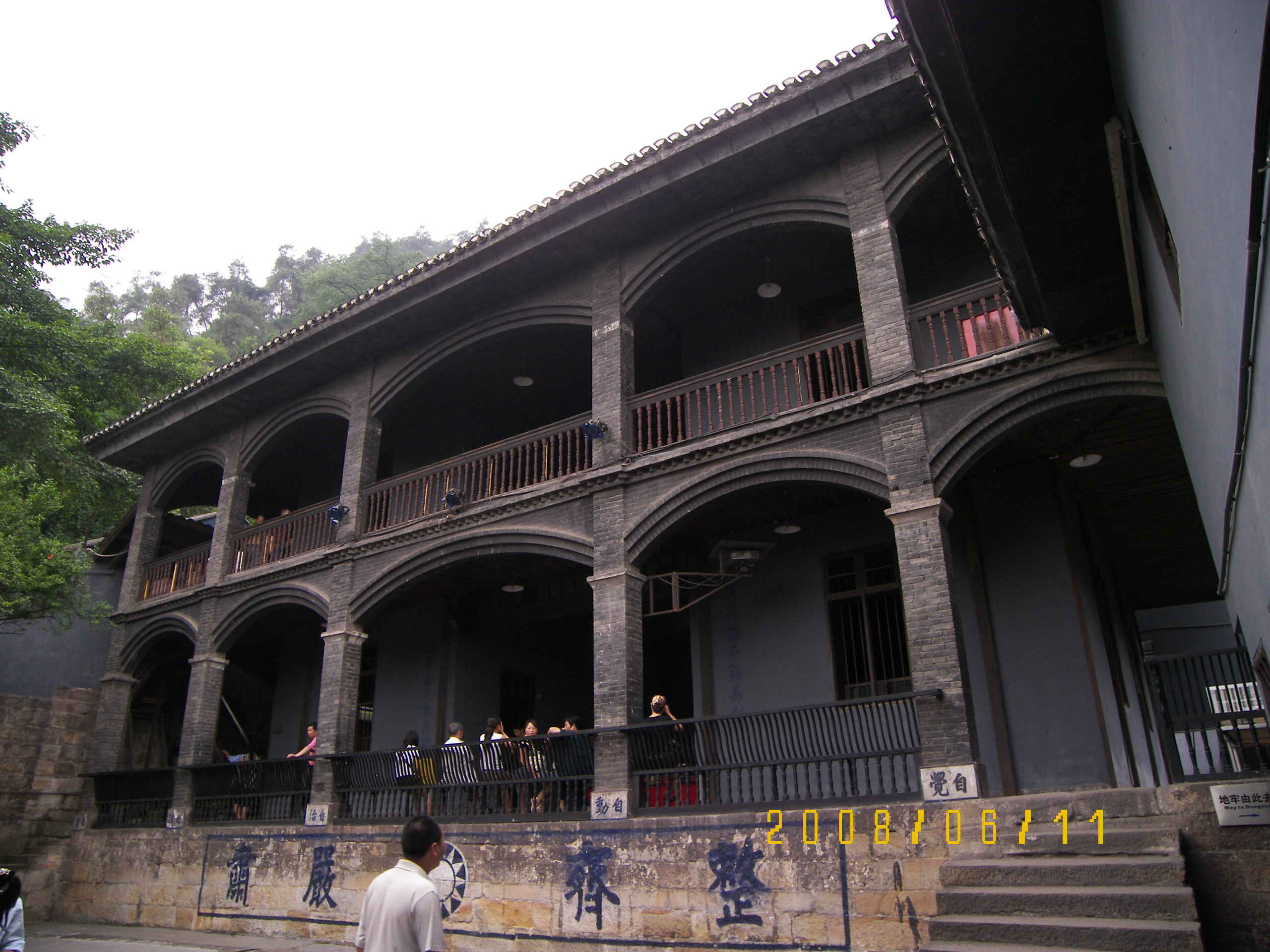 10:55到烈士墓站,轉(zhuǎn)210路去白公館,這里提一下,我這部215沒有報站,大家記一下前后站名,錯過一站還是有點路的,呵呵.210等了一小會兒,到白公館下車已是11:13了,進口就在下車的地方,爬幾段臺階上去,環(huán)境真不錯,有山有水,此處原名"香山別墅",后1938年,軍統(tǒng)局用30兩黃金將其買下。1939年軍統(tǒng)將其改為軍統(tǒng)局本部直屬看守所,稱軍統(tǒng)重慶看守所,主要關(guān)押國民黨政府認為級別較高的政治犯。1943年中美合作所成立后,白公館內(nèi)犯人被遷移至渣滓洞 。白公館改名為中美合作所第三招待所,供美方人員居住。第二次世界大戰(zhàn) 結(jié)束后,中美合作所 撤銷,美方人員回國,白公館才又恢復(fù)為看守所。并且軍統(tǒng)將西南的軍統(tǒng)集中營,息烽監(jiān)獄、望龍門看守所、渣滓洞看守所合并,成立了白公館看守所,后稱國防部保密局看守所.進去轉(zhuǎn)了轉(zhuǎn),地方不是很大, 墻上還寫了“進思進忠、退思補過”、“正其宜不計其利,明其道不計其功”等標(biāo)語,咱們共產(chǎn)黨人可不是軟骨頭哦,還有小蘿卜頭的雕像,現(xiàn)在將樓上樓下的牢房改為展覽室,各種內(nèi)容蠻多的.這里和渣滓洞并稱為關(guān)押、迫害、屠殺革命志士的“兩口活棺材”。