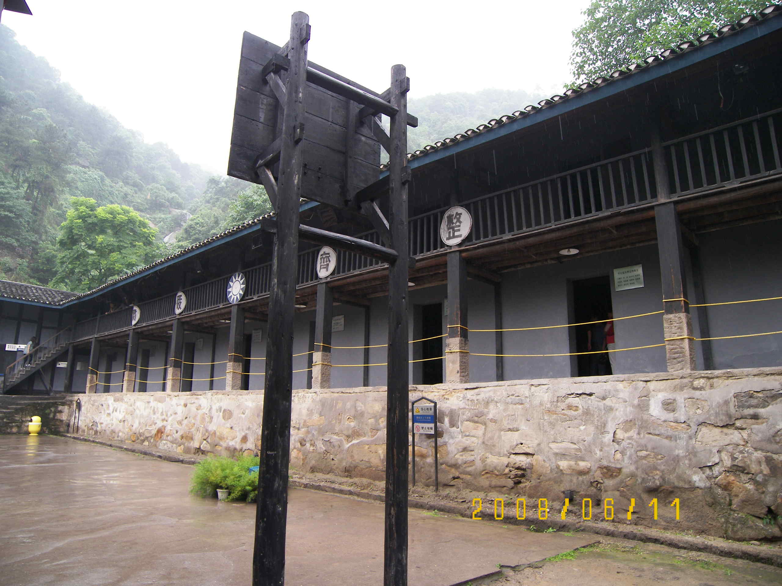 出來左轉(zhuǎn)沿公路去氣象臺,這里是二戰(zhàn)珍珠港事件爆發(fā)后,中美兩國為增進雙方軍事情報交流與合作,搜集中國沿海地區(qū)水文、氣象資料而建立的.感覺路標(biāo)不大清晰,問了一下才找到.進去的時候工作人員都不在,一個人慢慢看,這里到后來成為了對付我黨的一個特務(wù)基地.出氣象臺去梅園的路上下起了大雨,幸虧早有準備,冒雨沖到了梅園,這里是戴笠為梅樂斯修的別墅,因梅樂斯喜歡梅花,1944年秋建成后四周編種梅花而得名,地方不是很大,內(nèi)容也多是與中美合作所有關(guān),也算是一個反共基地了,看完躲了一下雨.有些好奇地問工作人員,這么高的臺階,這些老爺天天自己爬的?答曰,山后有汽車道,或者乘滑竿上下,恍然.