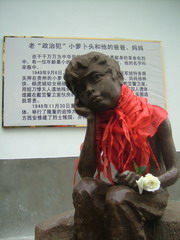 參觀了傳說很久的渣子洞、歌樂山,復習了從小學到中學在書本上的仇恨教育。小蘿卜頭的展室比較有震撼力,配了多媒體、電視,“別殺我!”的叫聲很凄厲,趕緊出來。小蘿卜頭的爸爸-楊虎城的秘書,英俊挺拔。可惜。江姐繡的紅旗也讓人感慨唏噓,一張已經(jīng)退色的紅布,寄托一個堅強女子的夢想。