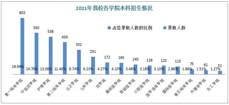 在專業(yè)分布上,學(xué)校共開設(shè)35個本科專業(yè):2021年臨床醫(yī)學(xué)(5+3)130人、臨床醫(yī)學(xué)(5+3兒科方向)50人、臨床醫(yī)學(xué)(五年制)541人、臨床醫(yī)學(xué)(中外合作辦學(xué))115人、兒科學(xué)201人、麻醉學(xué)171人、醫(yī)學(xué)影像學(xué)173人、精神醫(yī)學(xué)84人、護理學(xué)538人……
