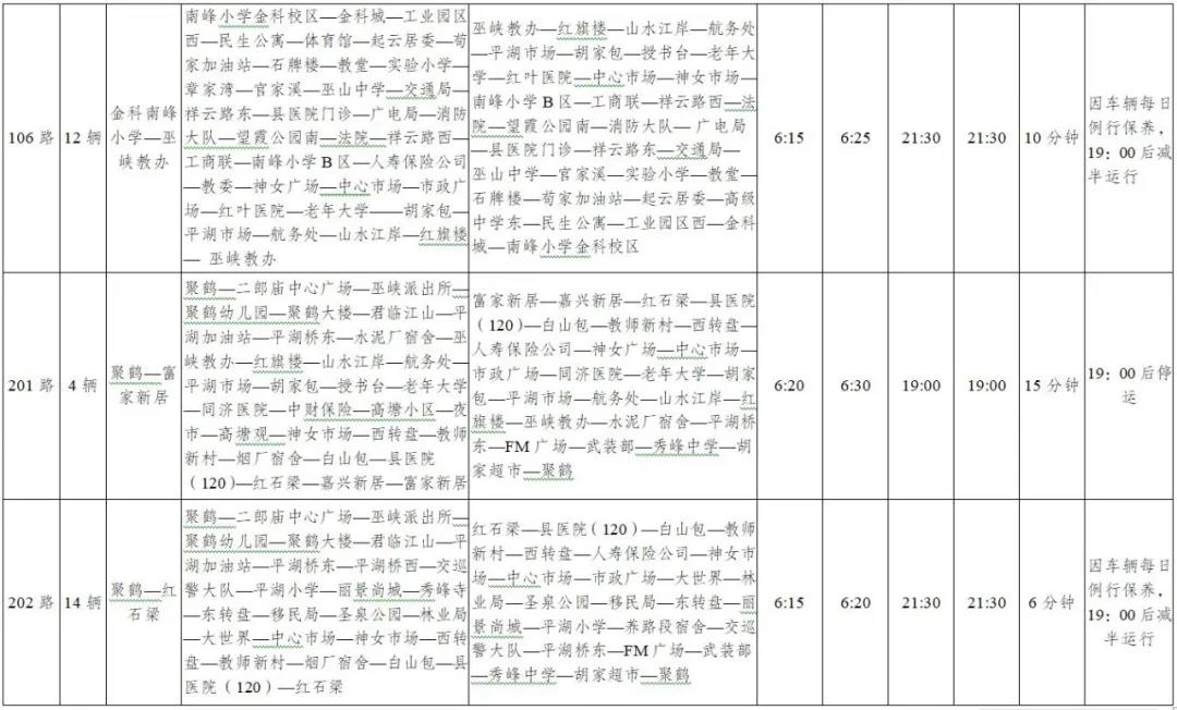線路走向:上錦城-工業(yè)園區(qū)-章家灣-巫山初級中學(xué)-東轉(zhuǎn)盤-神女大道-平湖路-古城碼頭。