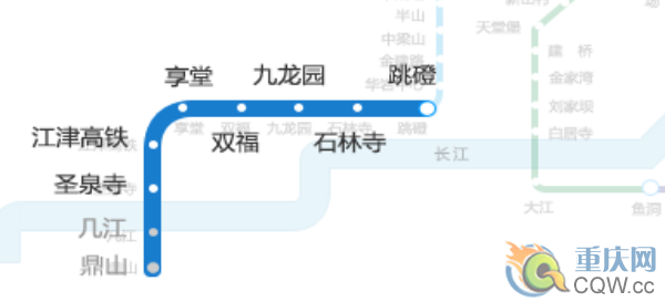 江跳線起于軌道5號線跳磴站,途經(jīng)華福路、九江大道、南北大道,止于江津濱江新城,線路全長28.22公里,橫跨大渡口區(qū)、重慶高新區(qū)、九龍坡區(qū)。全線共設7個站點,全部為高架站,平均站間距4.39公里。江跳線軌道和控制信號可與軌道5號線互聯(lián)互通,未來該線列車可與5號線全線貫通運營,并預留與軌道交通18號線貫通條件。