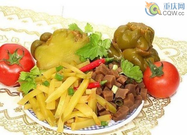 以青菜頭為原料,這種青菜頭有肥大、柔嫩、多汁的瘤狀莖、俗稱菜頭。其加工方法為精選質(zhì)嫩、形好、新鮮的青菜頭,經(jīng)剝皮、穿串、晾曬、腌制、上囤、再腌制、壓榨、修剪、挑筋、整形、分級(jí)、淘洗、拌料、裝壇、封口等工序制成。修剪整形,濾凈鹽水,然后拌以食鹽、上等海椒面、砂仁、白胡椒、八角、山奈、茴香、甘草、姜干、花椒等多種名貴植物香料粉,入陶壇密封發(fā)酵。產(chǎn)品色澤青綠,辣粉鮮紅,塊形均勻,質(zhì)地脆嫩,香味濃郁,咸淡適口,下鍋不軟,久貯愈香。營(yíng)養(yǎng)價(jià)值甚高。有助消化、解油膩、增食欲的功效。