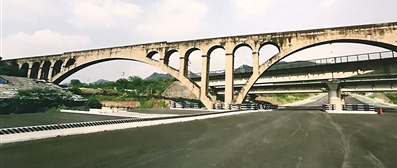橫跨在公路上像彩虹一樣的建筑,滿滿的歷史感,讓人好奇,是什么樣的建筑需要修建跨度如此之大?這個(gè)建筑的名字叫石龍水渠。