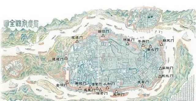 早期的菜園壩碼頭菜市場(chǎng)就設(shè)在離它不遠(yuǎn)的南紀(jì)門,因此南紀(jì)門又有“菜籃子”之稱。在《重慶歌》的童謠里,關(guān)于南紀(jì)門的這句是這樣的:南紀(jì)門,菜籃子,涌進(jìn)涌出。